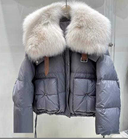 Luxury Down Puffer Coat with Oversized Genuine Fur Collar